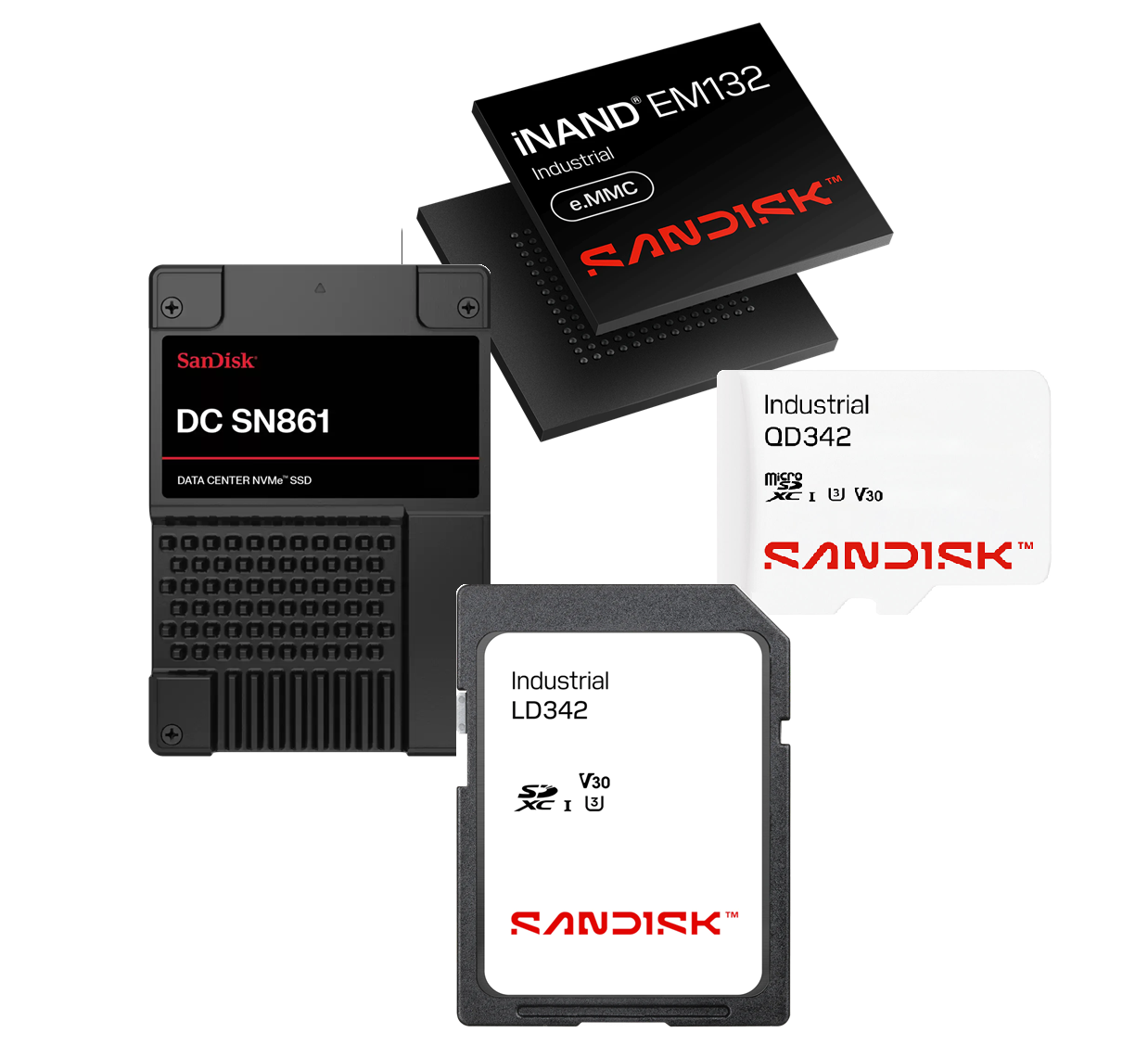 フラッシュメモリFull SD、microSD、eMMC、SSDをエンタープライズ市場、車載市場、産業市場から民生市場向けまで幅広く取り揃えています。